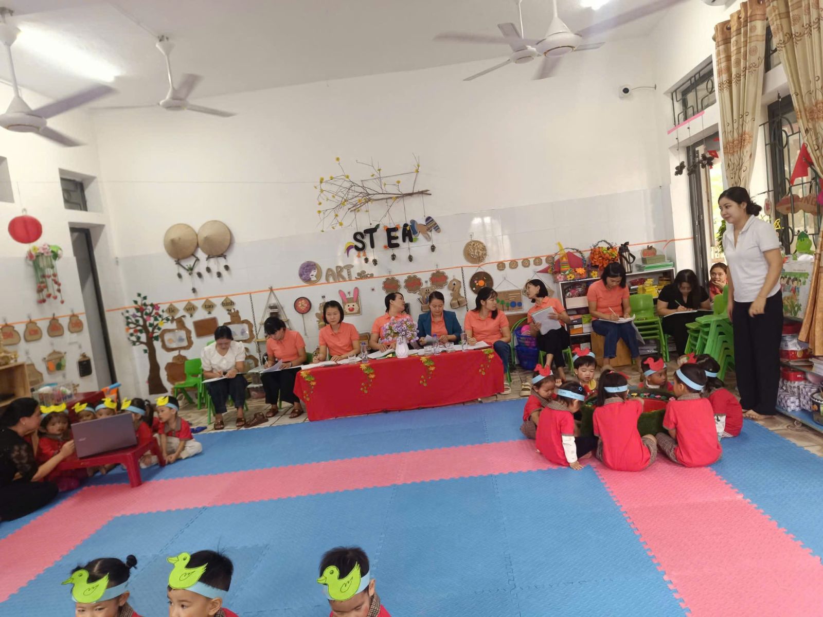 ????Hội giảng là dịp để các cô thể hiện năng lực chuyên môn, lòng yêu nghề mến trẻ, đồng thời lan tỏa tinh thần: “Mỗi giờ học là một niềm vui – Mỗi cô giáo là một nguồn cảm hứng.”????